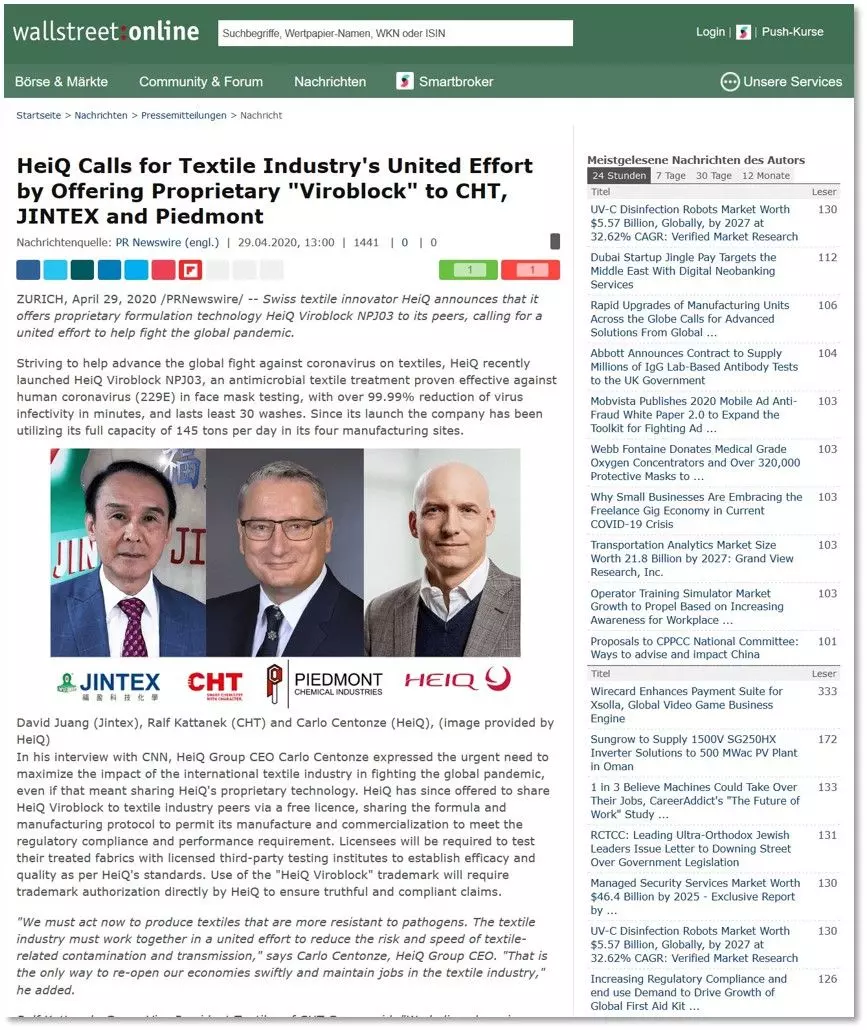 Jintex & HeiQ Küresel Stratejik İşbirliği - Salgınla mücadeleye katkıda bulunmak için kriz zamanlarında birleşin.